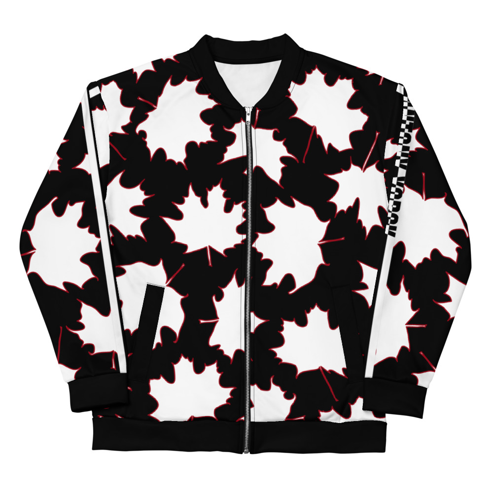 Herren Sweatjacke im Blouson Style Maple Leaf Weiß Magenta Schwarz
