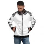 Herren Sweatjacke im Blouson Style Weiß Häkel Galonstreifen