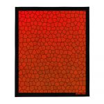 Der einseitige Druck überzeugt mit seiner Mischung aus Rottönen, die sich in Vielecken anordnen. Umrahmt in Schwarz und Logo Brand ANTONY YORCK.