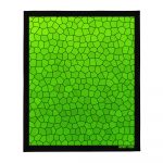 Der einseitige Druck überzeugt mit seiner Mischung aus Grüntönen, die sich in Vielecken anordnen. Umrahmt in Schwarz und Logo Brand ANTONY YORCK.
