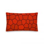 Das Sofakissen Granatapfel ist mit seinem Vieleck Muster in verschiedenen Rottönen sehr dekorativ auf der Couch und als Wohnaccessoire.