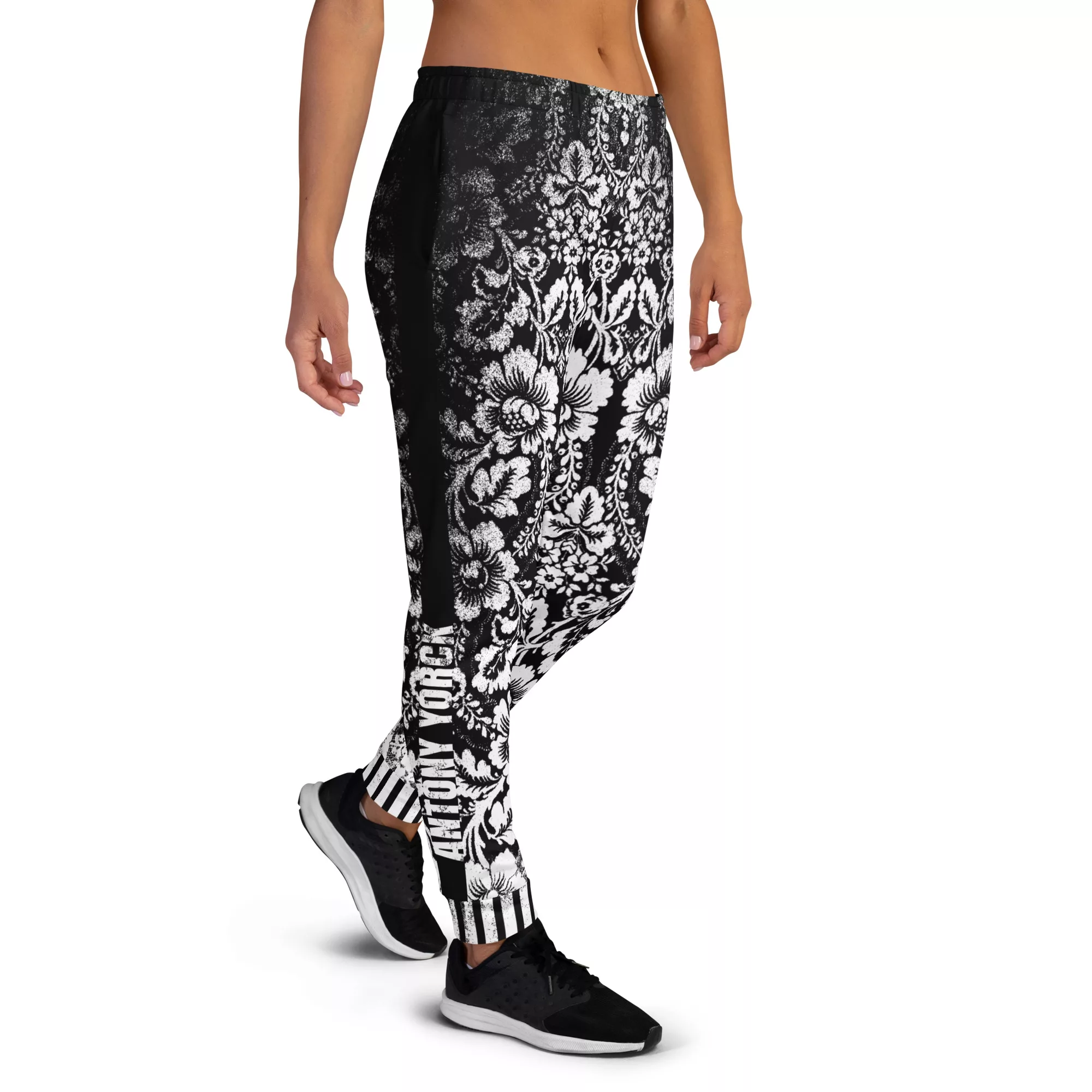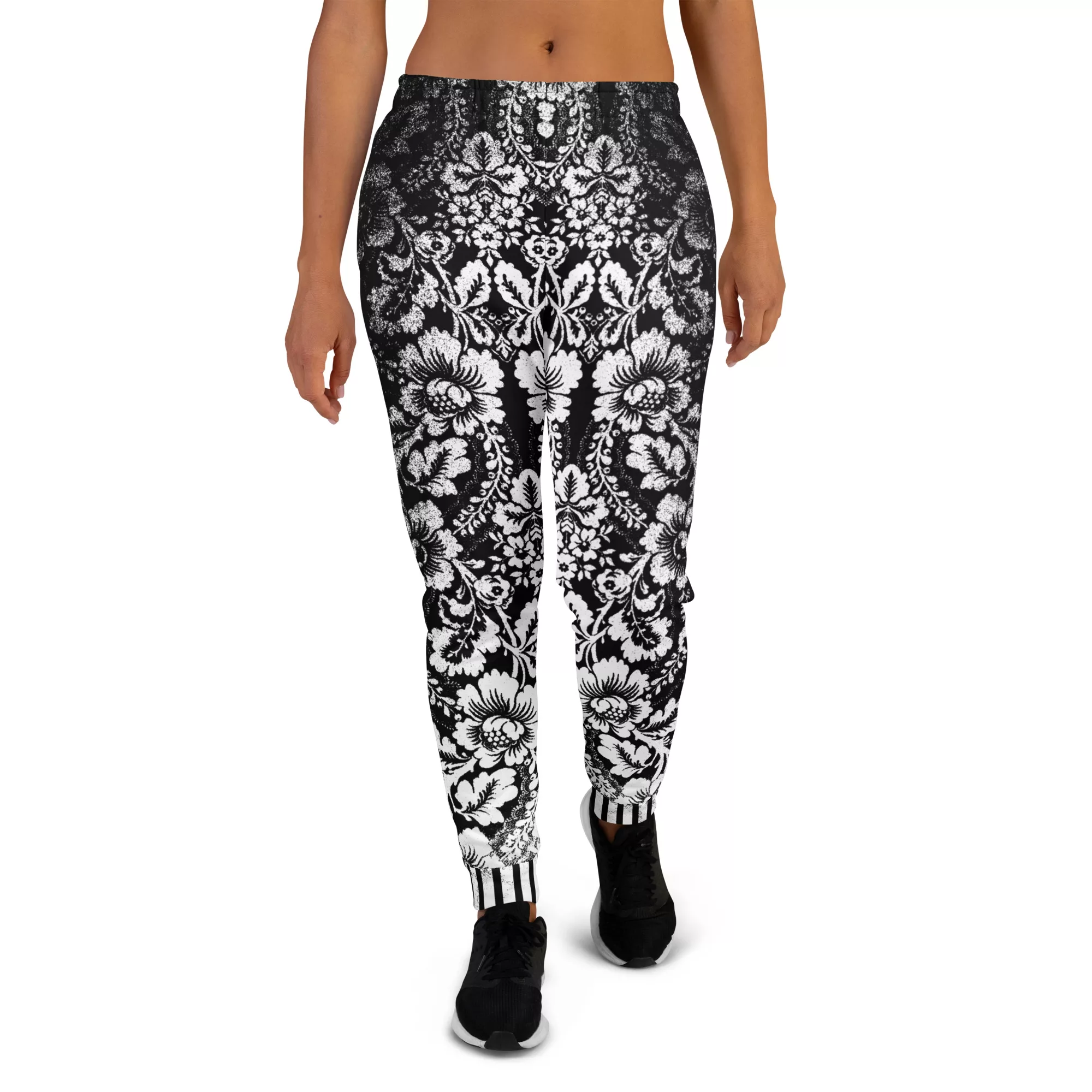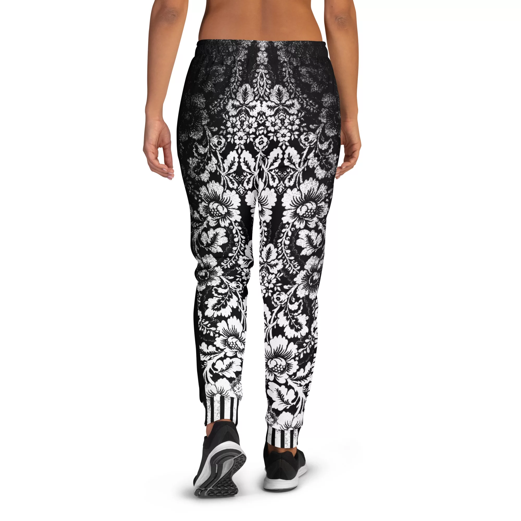 Stylische Designer Jogginghose Damen Baroque Ornaments Black White