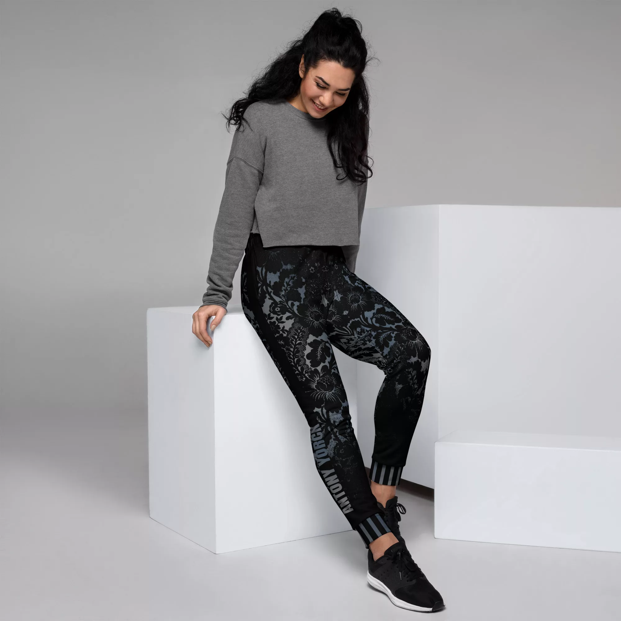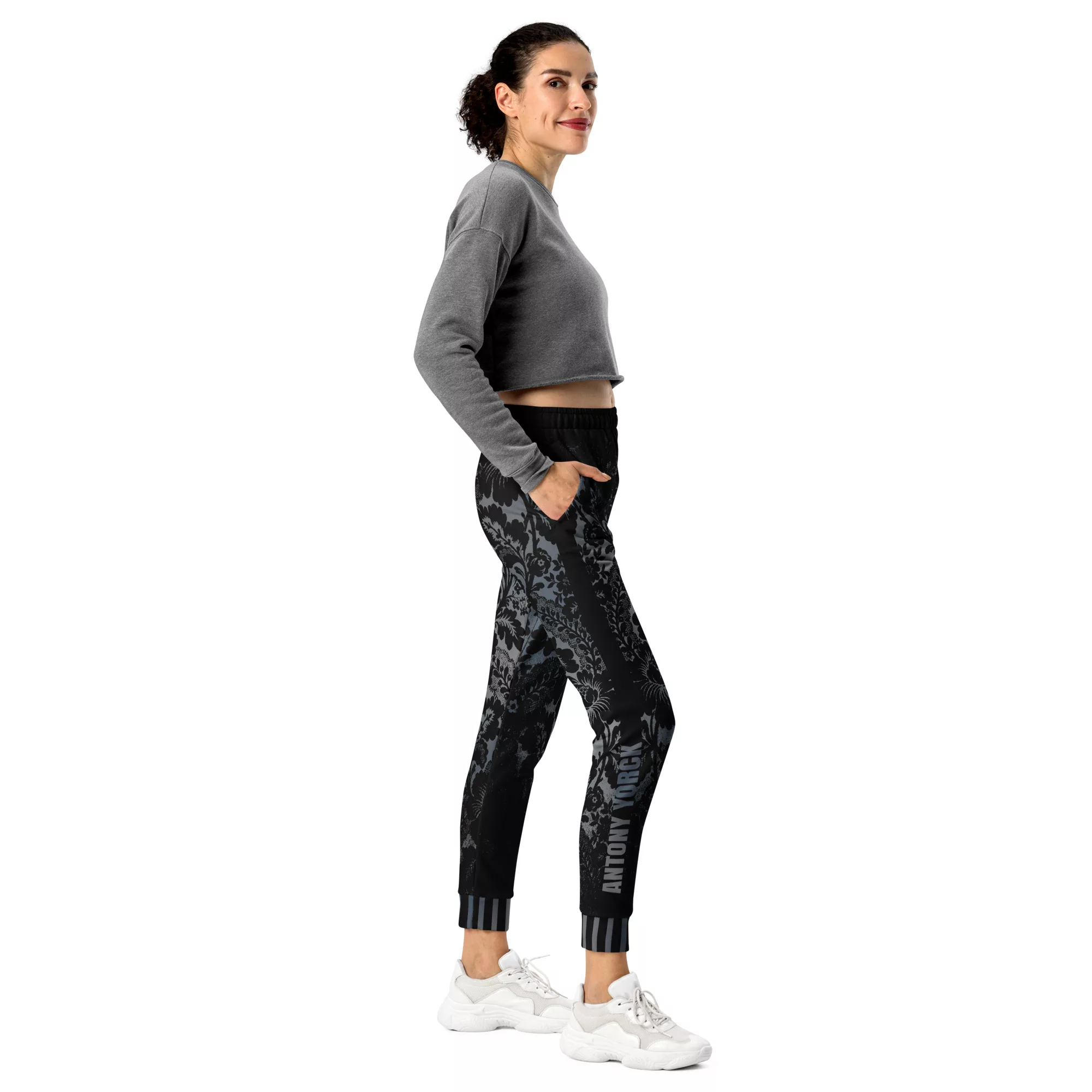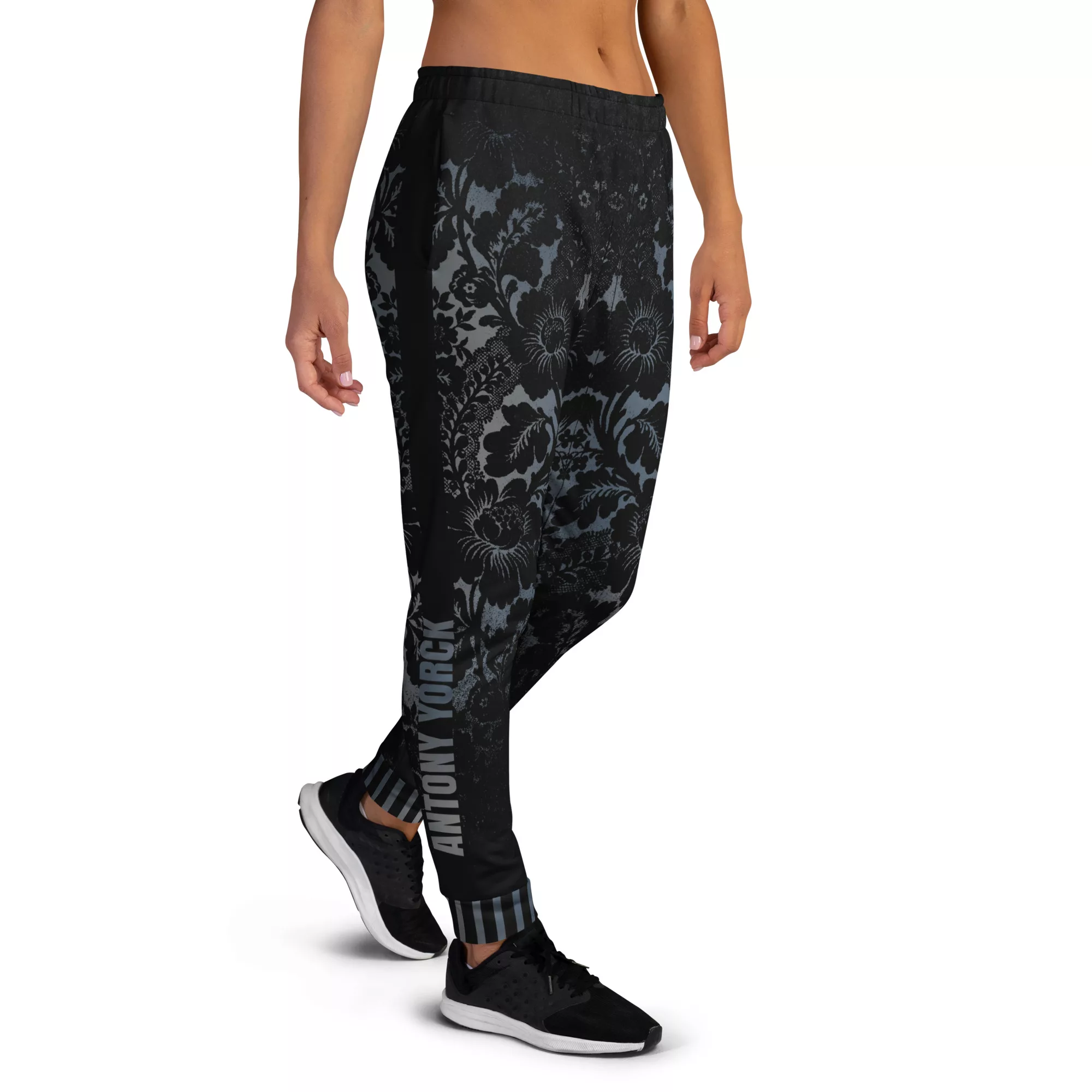 Entdecke die einzigartige Designer Jogginghose für Damen aus recyceltem Material von ANTONY YORCK aus der „Baroque Noir Collection“ – ein Statement für den rebellischen und subversiven Urban Street Style. Diese Athleisure-Wear kombiniert luxuriöse Barock-Ornamente in Schwarz und Blau mit einem Hauch subversive Style, die das klassische Design auf den Kopf stellt. Das markante „ANTONY YORCK“-Logo entlang des Beins verleiht der Hose einen provokanten Kontrast, perfekt für Individualisten.