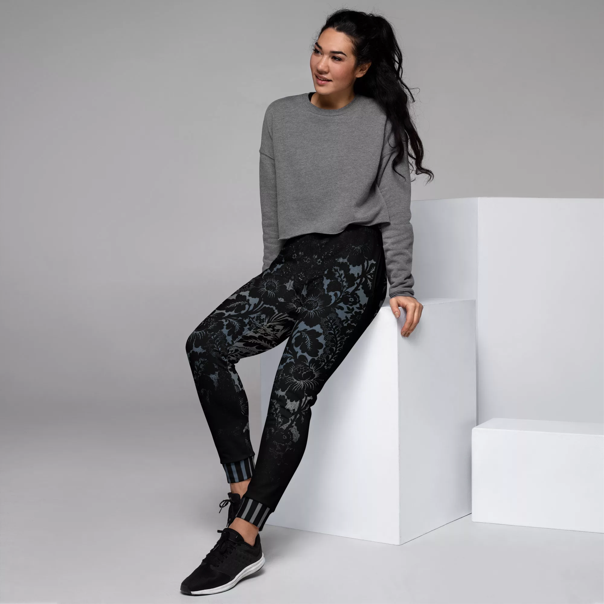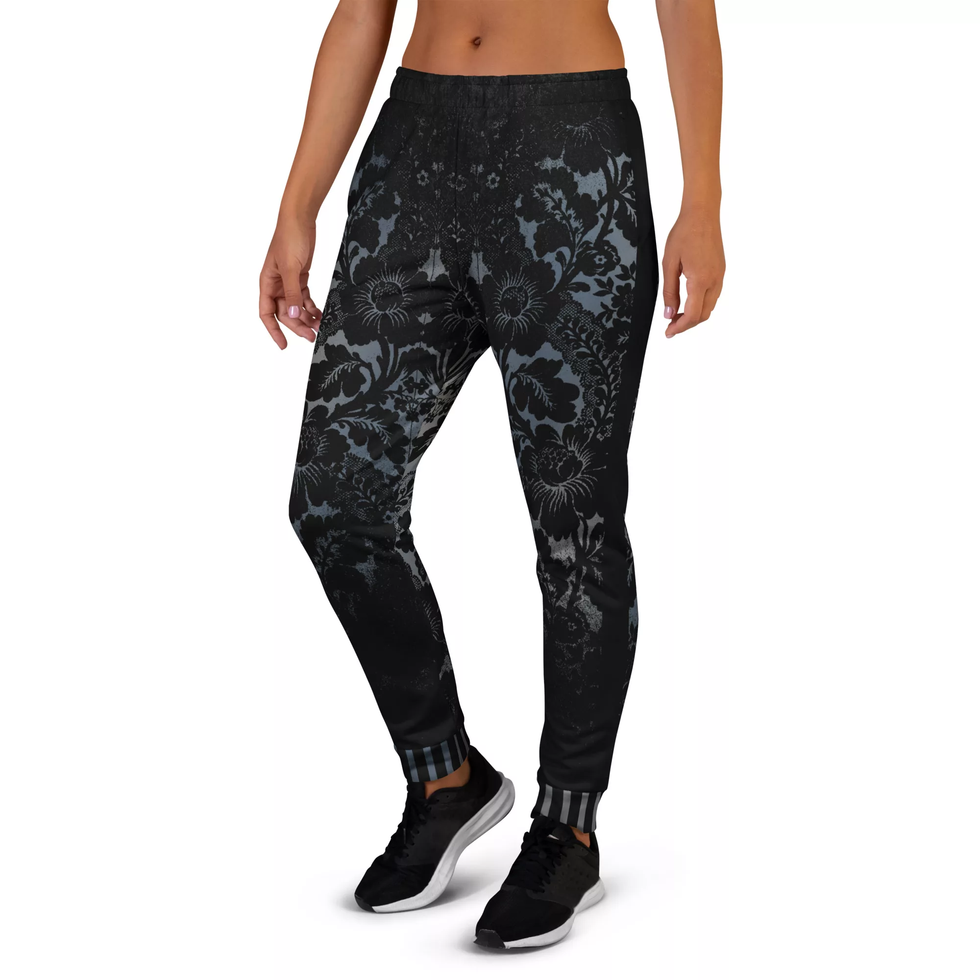 Stylishe Designer Jogginghose Damen Baroque Ornaments Black Blue