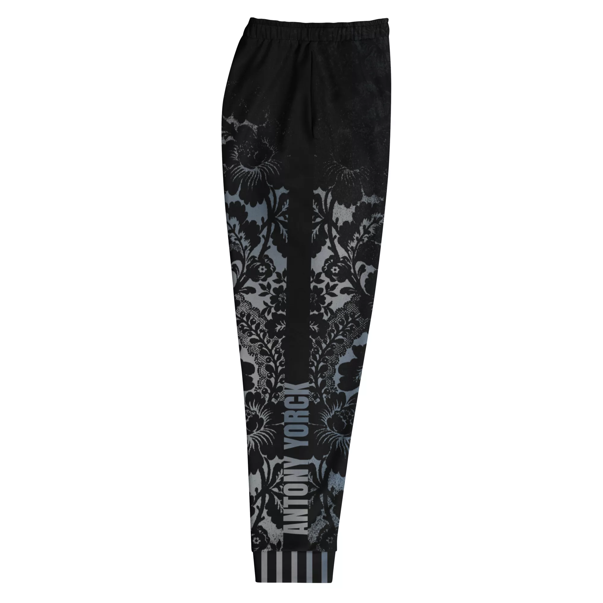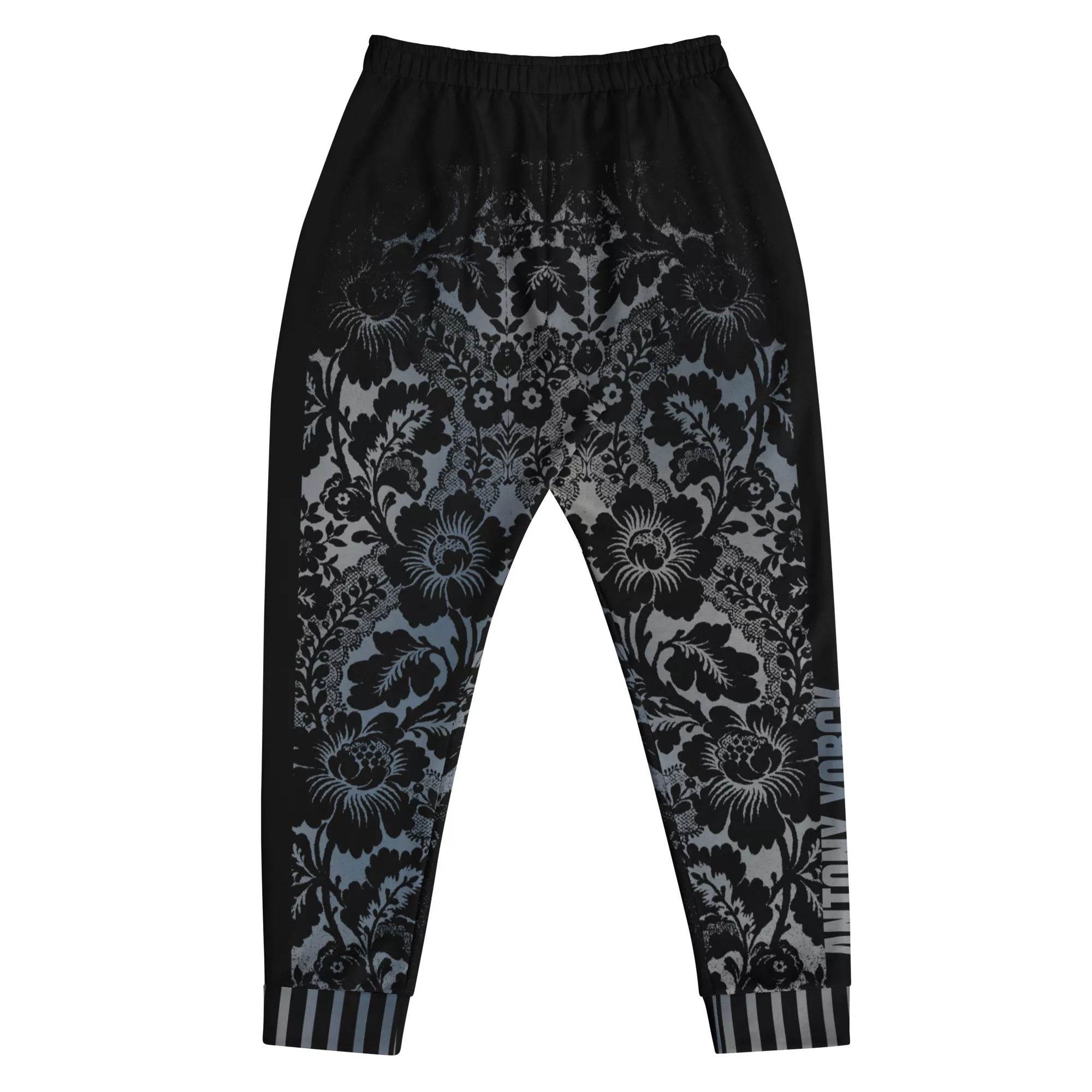 Entdecke die einzigartige Designer Jogginghose für Herren aus recyceltem Material von ANTONY YORCK aus der „Baroque Noir Collection“ – ein Statement für den rebellischen und subversiven Urban Street Style. Diese Athleisure-Wear kombiniert luxuriöse Barock-Ornamente in Schwarz und Blau mit einem Hauch subversive Style, die das klassische Design auf den Kopf stellt. Das markante „ANTONY YORCK“-Logo entlang des Beins verleiht der Hose einen provokanten Kontrast, perfekt für Individualisten.