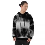 Exclusive designer men’s hoodie in black with double-sided stripes, brand lettering on the left sleeve.